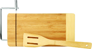 For the fancy cheese lover in your life. This bamboo cutting board has a built in wire cutter perfect for all soft and semi hard cheeses. Add your own laser engraved design to make it one of a kind. Spatula in picture not included with purchase.
