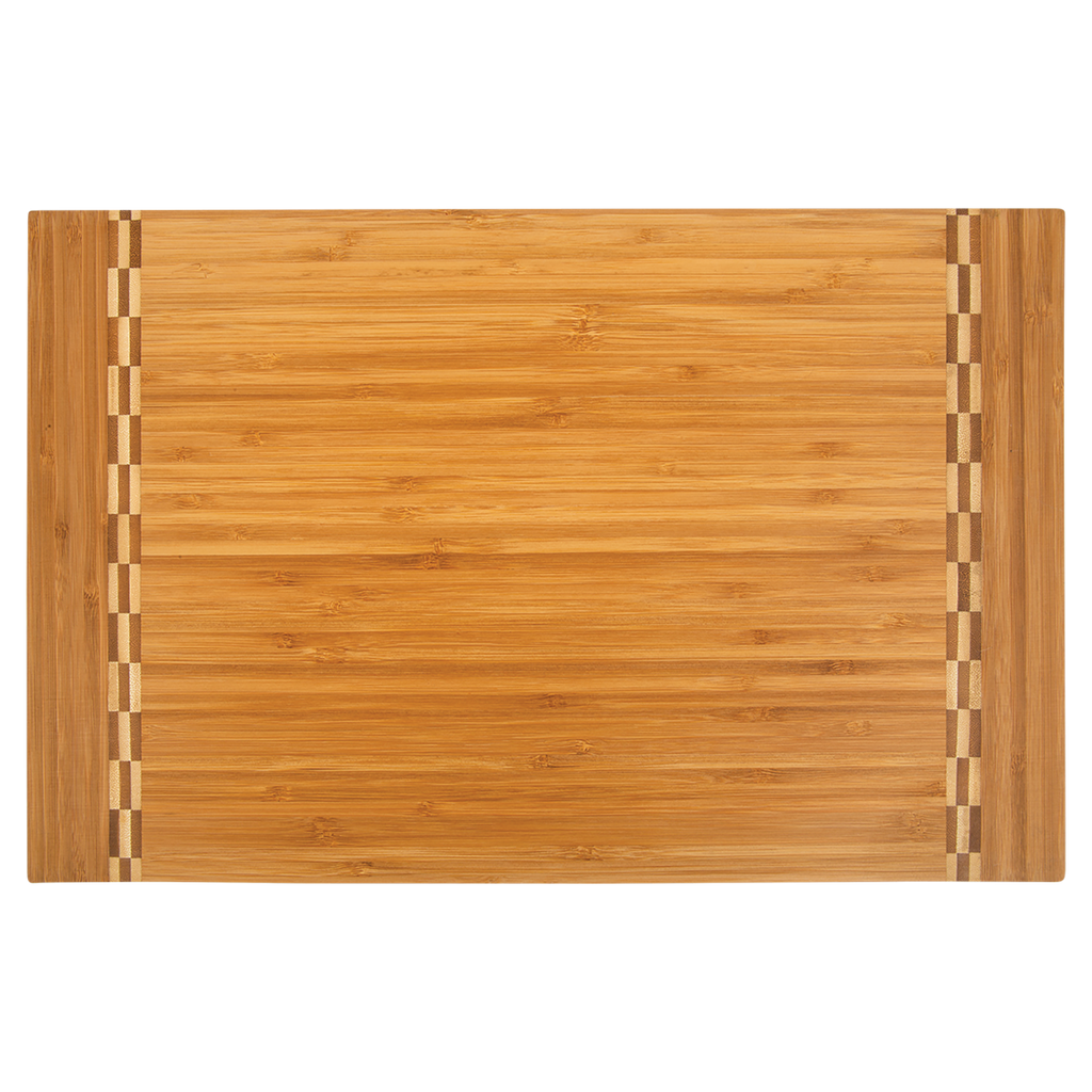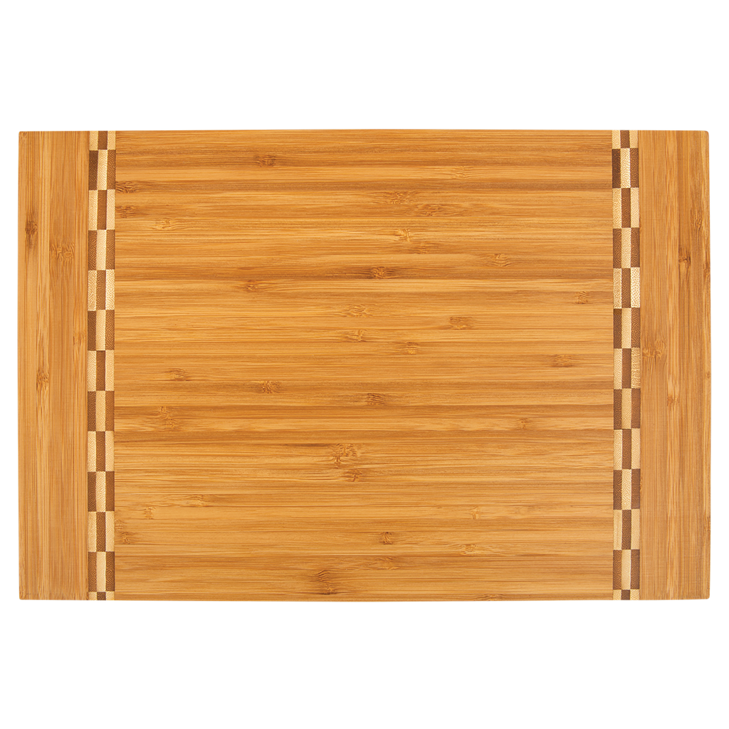 Beautiful bamboo cutting boards with decorative butcher block inlays. Personalize with your design or company's logo