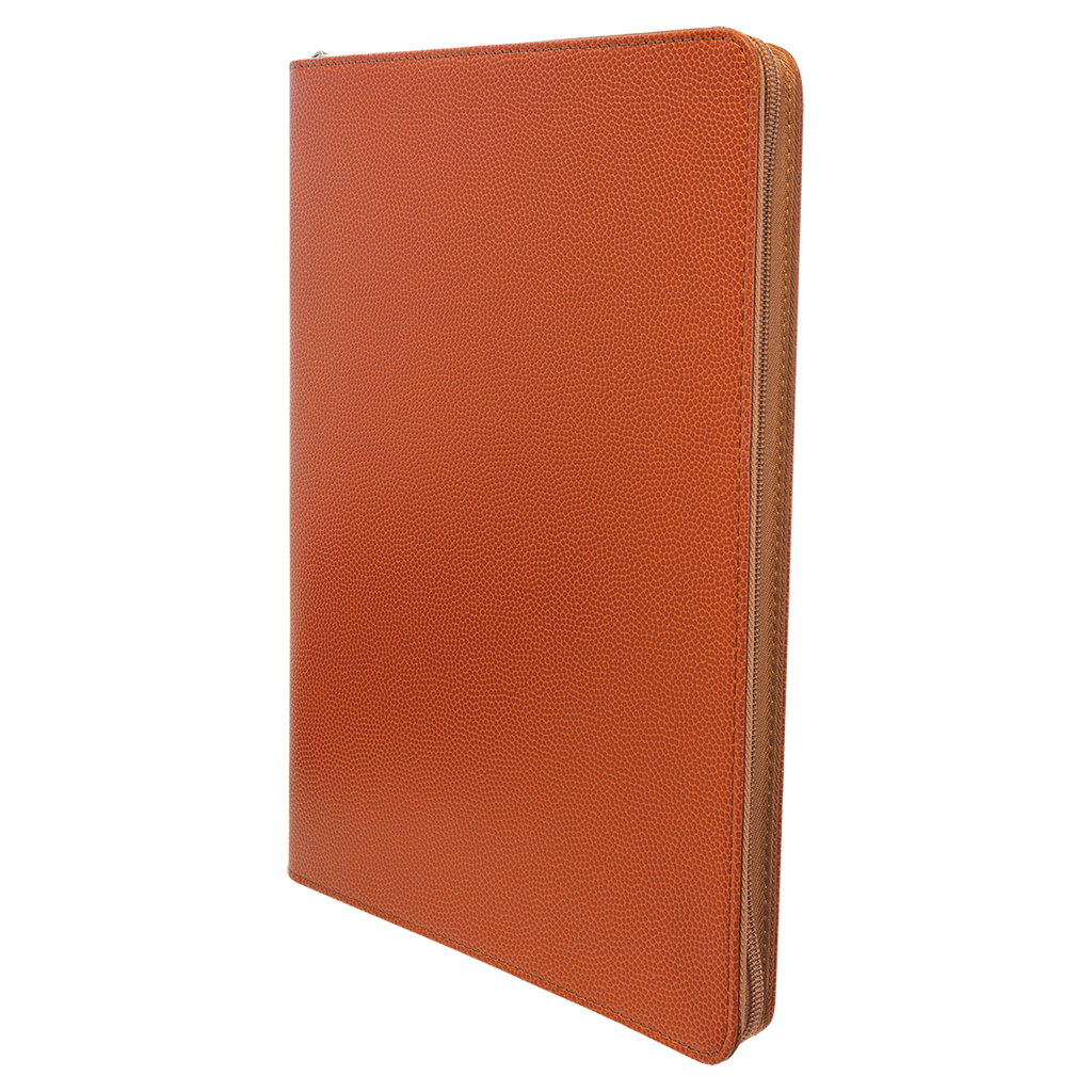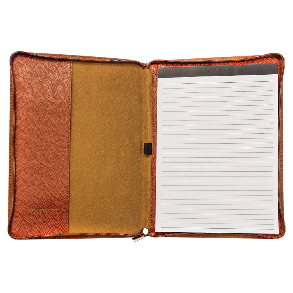 This zippered portfolio is crafted from high-quality leatherette that mimics the look and feel of an actual basketball, it offers a rich texture and authentic appearance perfect for fans and professionals alike. Ideal as a gift, the portfolio can be personalized with laser engraving or full-color printing, allowing you to add names, logos, or designs for a custom touch.