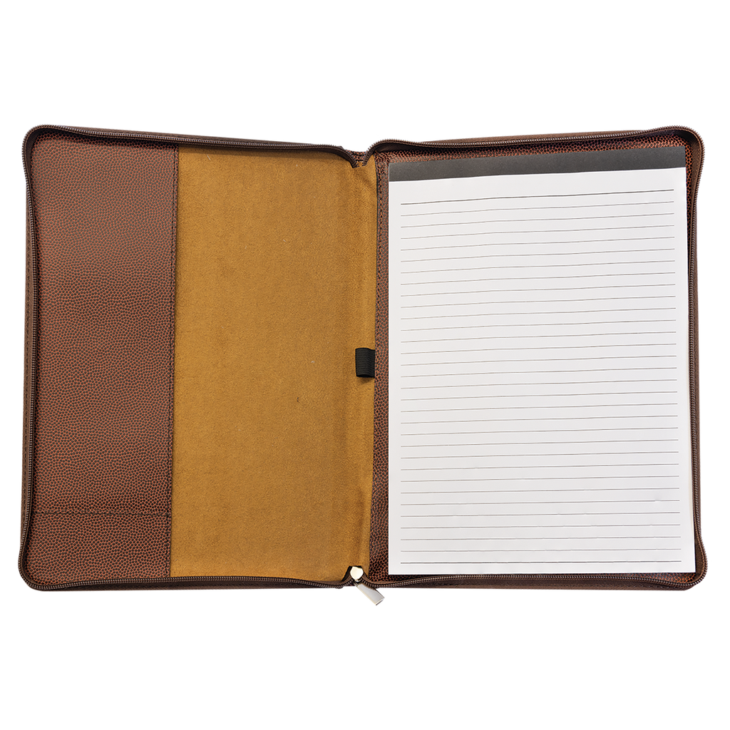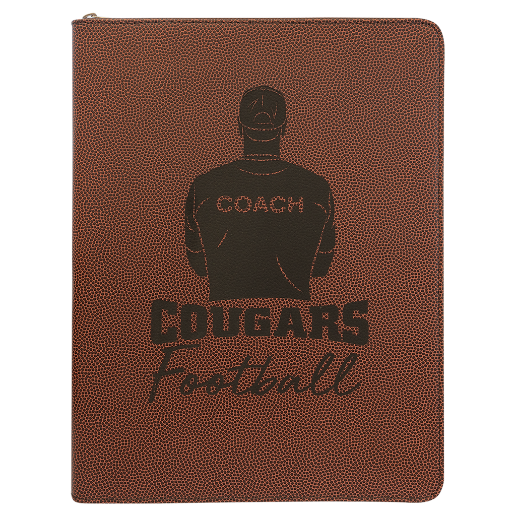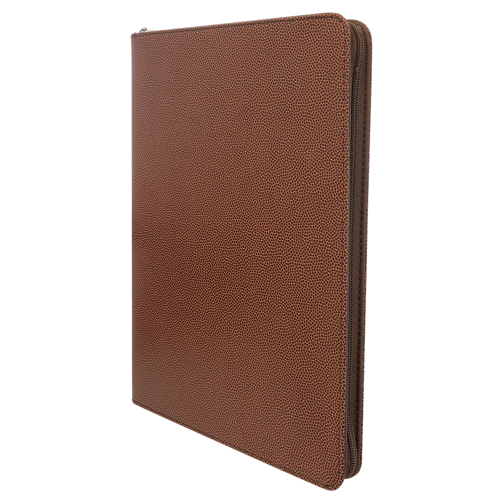 This zippered portfolio is crafted from high-quality leatherette that mimics the look and feel of an actual football, it offers a rich texture and authentic appearance perfect for fans and professionals alike. Ideal as a gift, the portfolio can be personalized with laser engraving or full-color printing, allowing you to add names, logos, or designs for a custom touch.