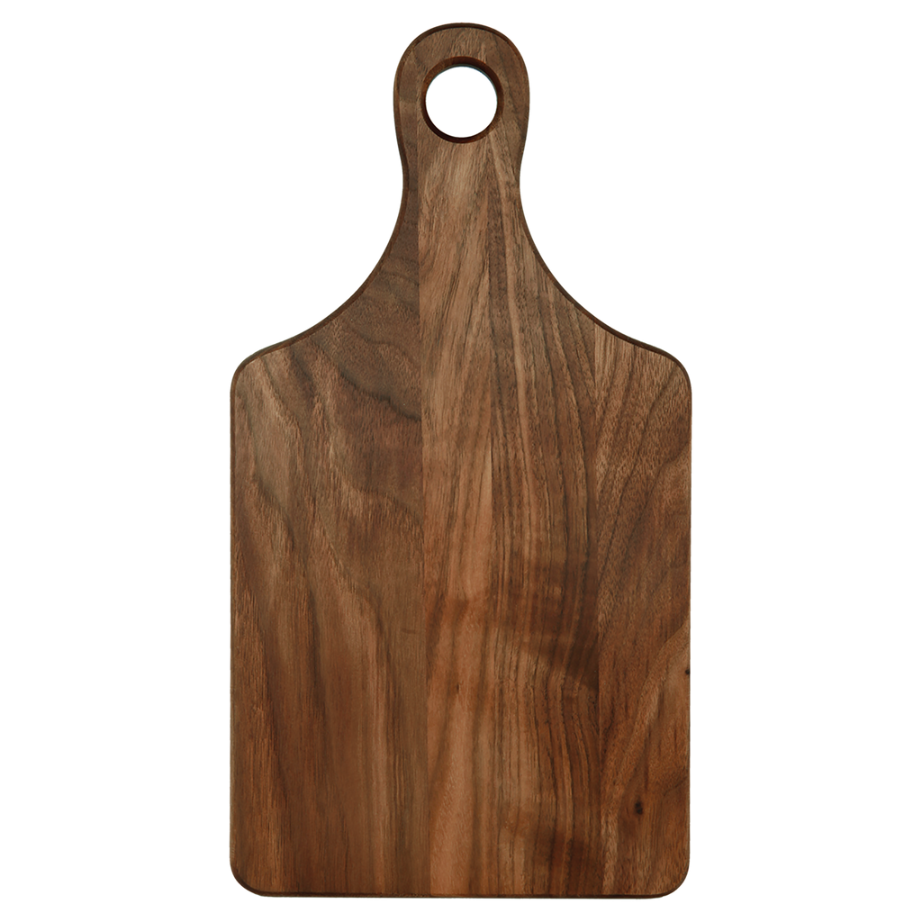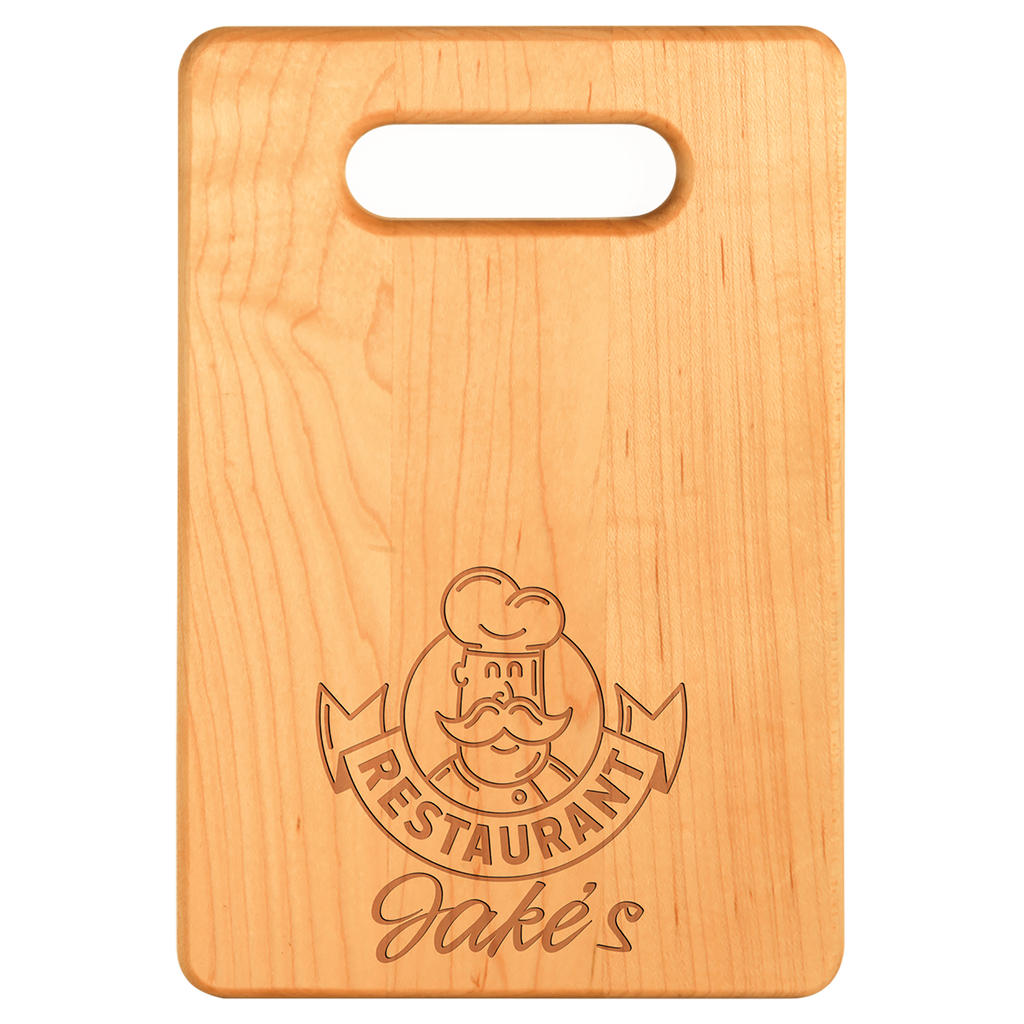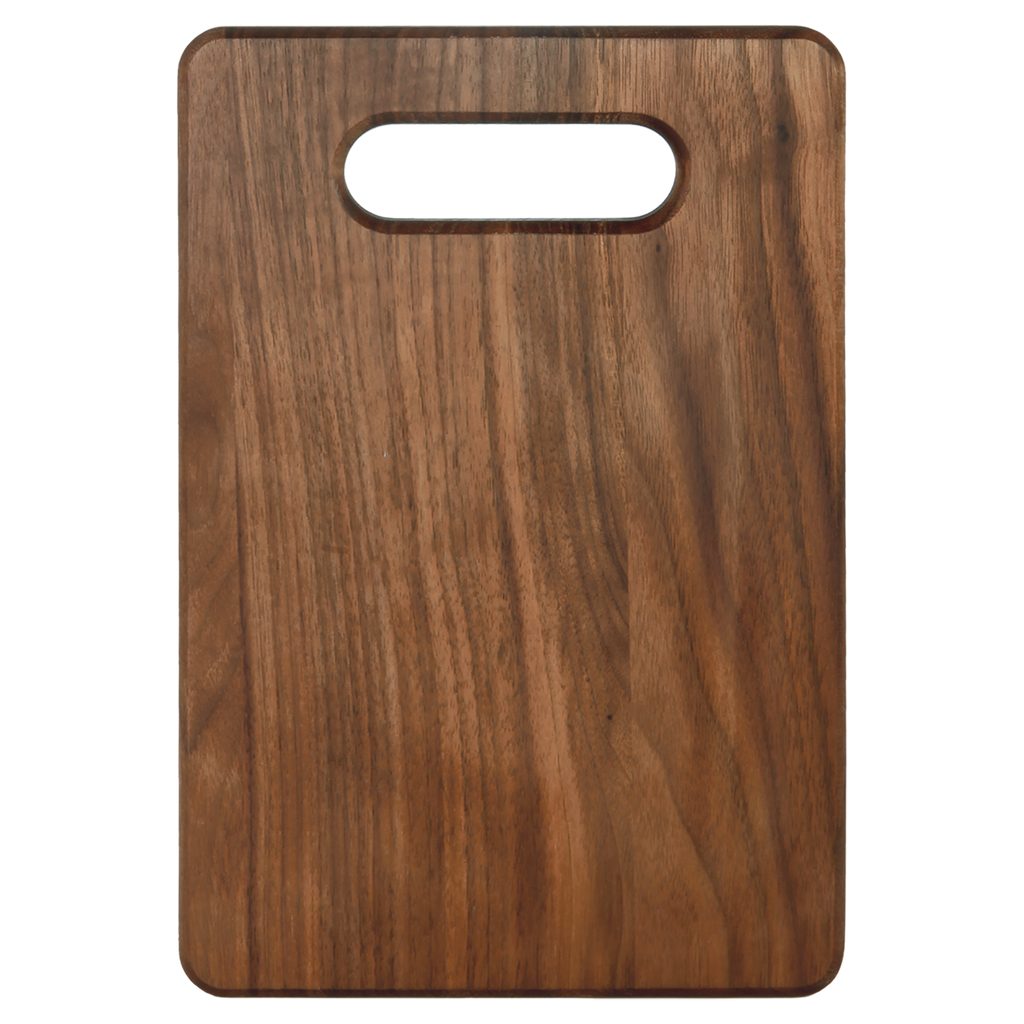 These all natural, 100% American made cutting boards are an essential addition to the chef in your life's kitchen. Each board has a handle for easy grabbing from the cabinet or hanging from a utility hook. The small board is 1/2" thick with all other sizes at 3/4" thick. Laser engrave your design to make it one of a kind.