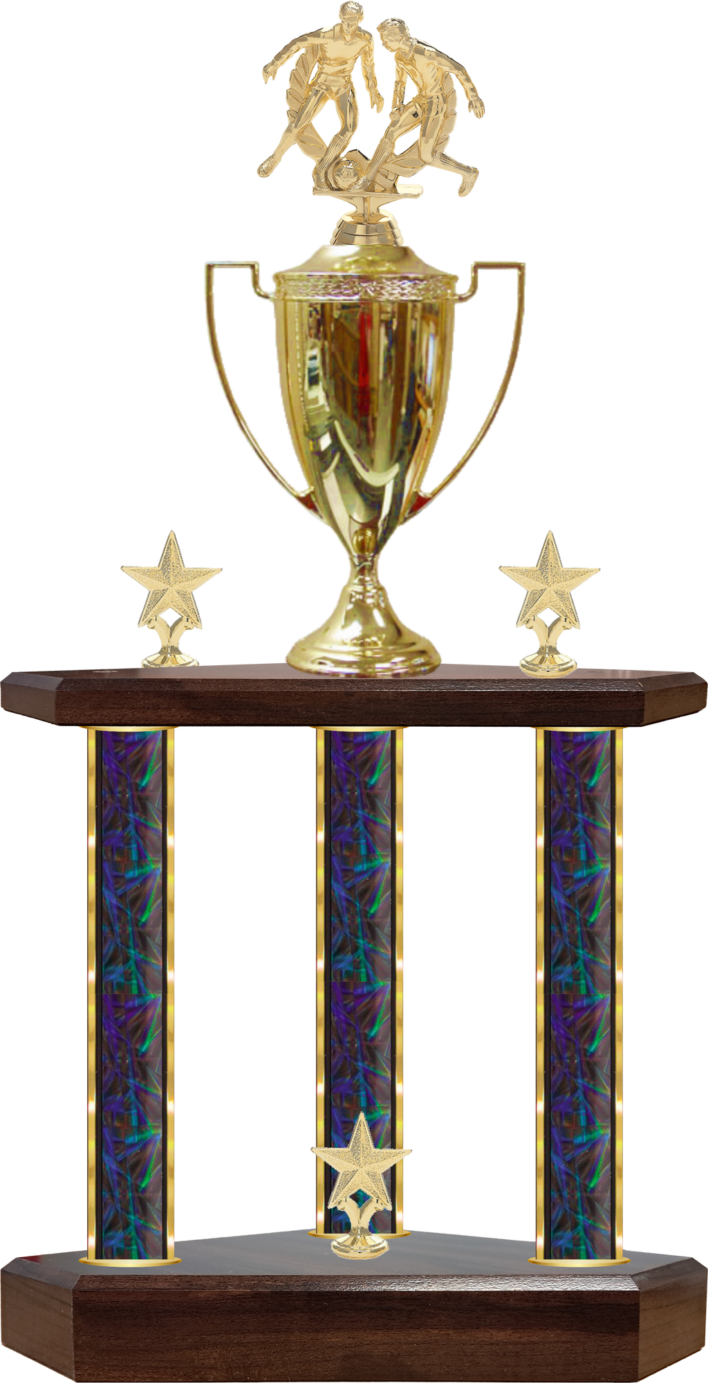 Traditional 3 Pillar Trophy with center trim, 2 top trims, and a cup to hold your choice of figure. Comes in multiple height options.